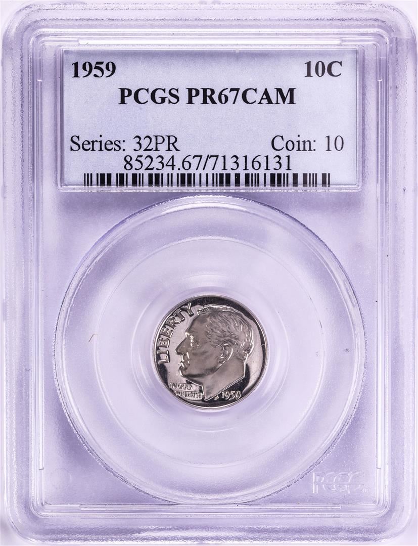 One 1959 Proof Roosevelt Dime Coin PCGS PR67CAM. PCGS Graded.