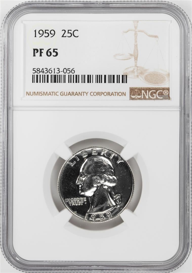 One 1959 Proof Washington Quarter Coin NGC PF65. NGC Certified.