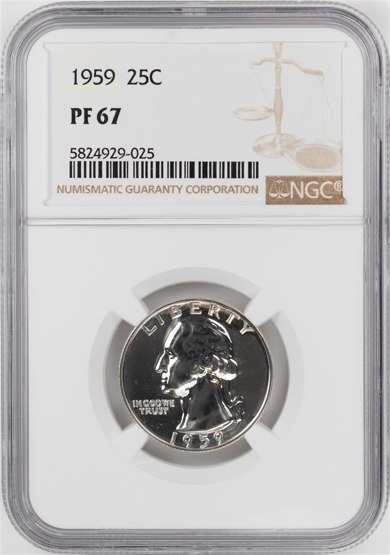 One 1959 Proof Washington Quarter Coin NGC PF67. NGC Certified.