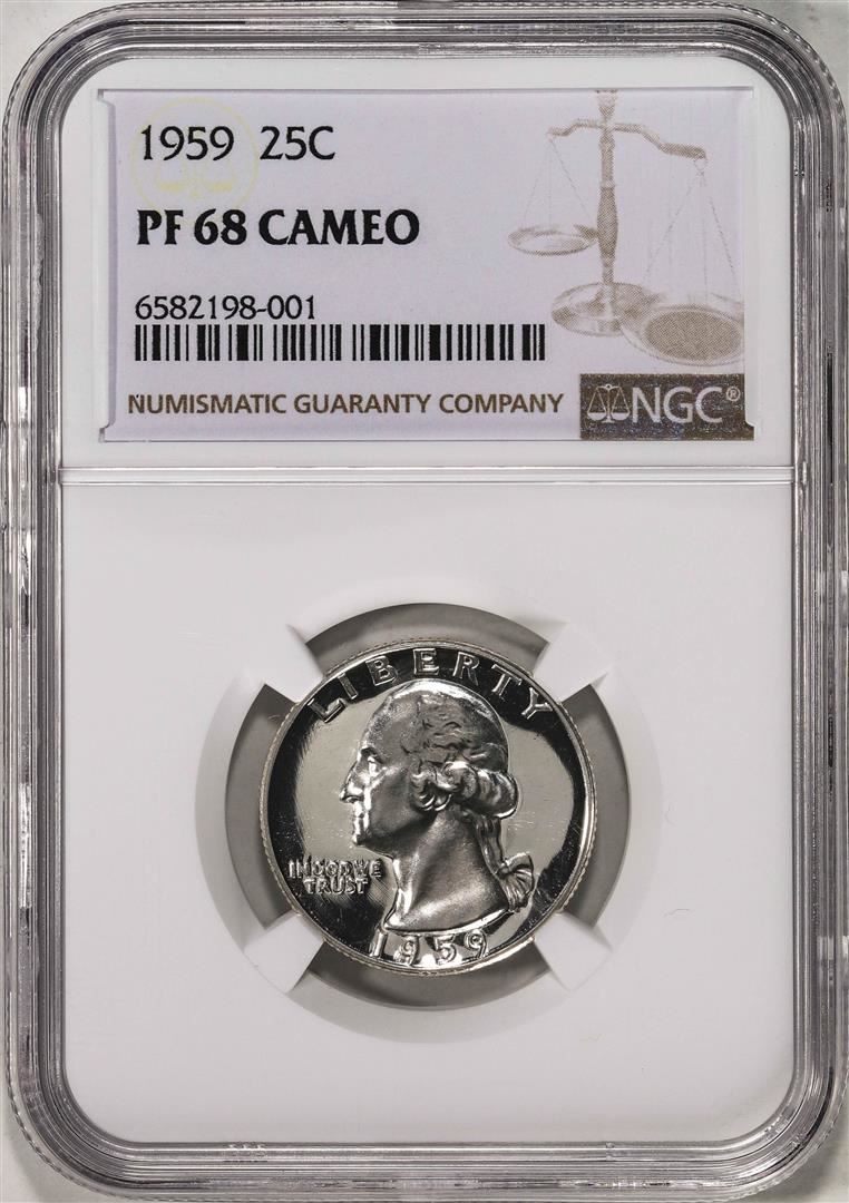 One 1959 Proof Washington Quarter Coin NGC PF68 Cameo. NGC Certified.