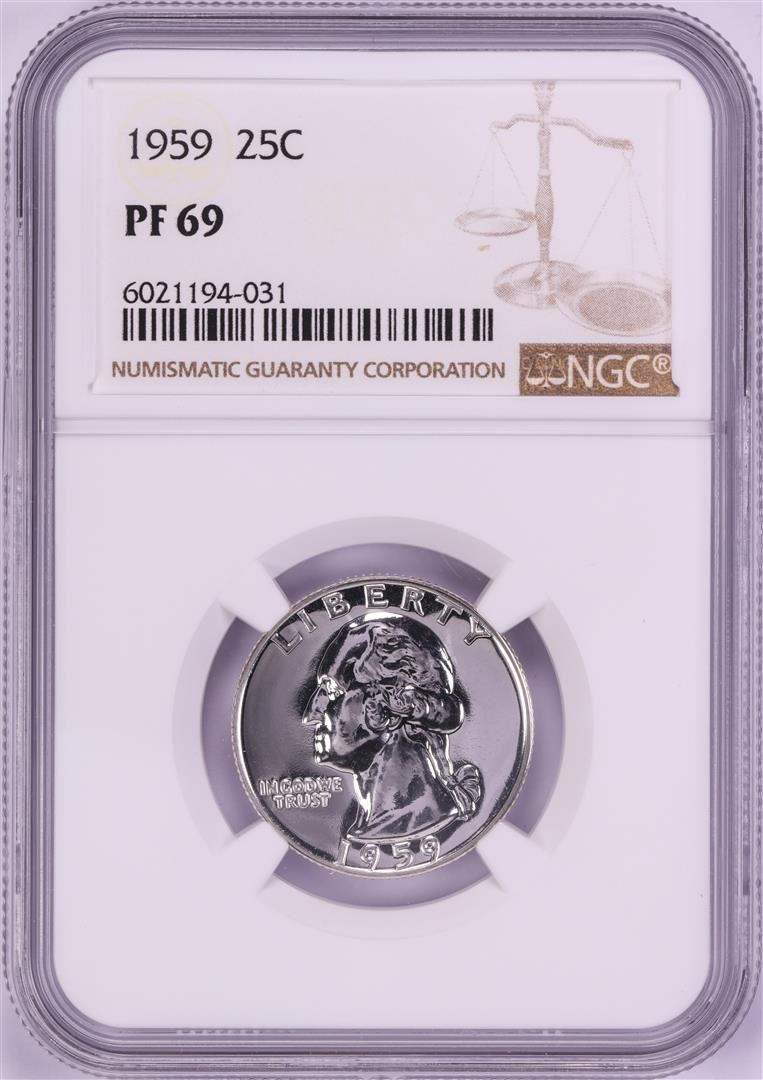 One 1959 Proof Washington Quarter Coin NGC PF69. NGC Certified.