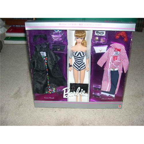 1959 Reproduction 35th Anniversary Barbie fashion, and package. Doll comes with Easter Parade and Roman Holiday reproduced outfits. They include all the accessories. What a great gift set. This was produced in 1993. Doll comes from a smoke free environment. Buyer to pay $20 for shipping, handling, and insurance. Thanks for viewing
