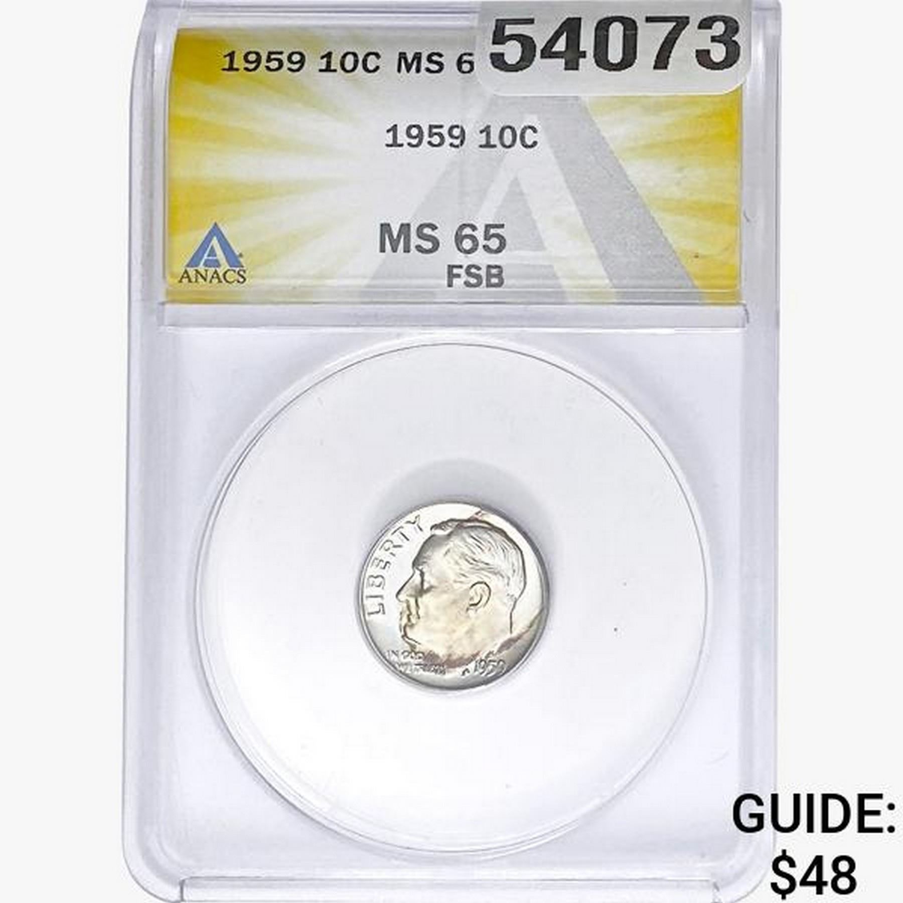 1959 Roosevelt Dime ANACS MS65 FSB