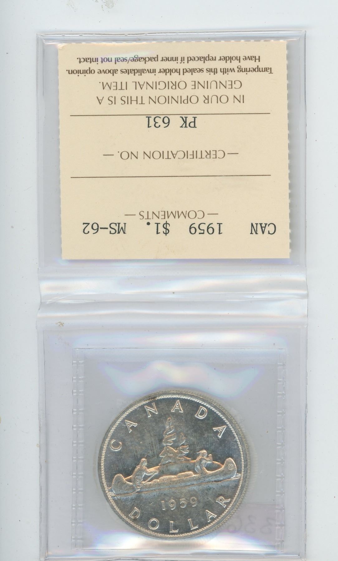 1959 SILVER DOLLAR. ICCS-CERTIFIED MS-62. BRIGHT WHITE.