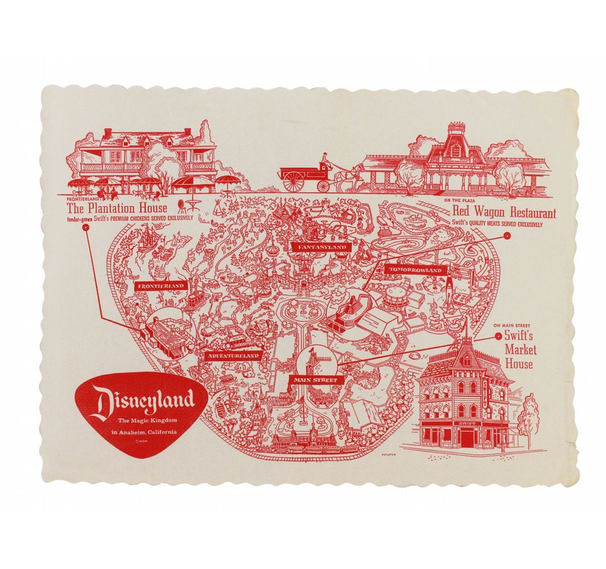 1959 SWIFT Restaurants in Disneyland Paper Placemat Map