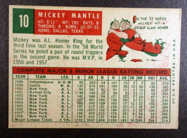ORIGINAL 1959 TOPPS VERY NICE EXCELLENT, GREAT COLOR & GLOSS