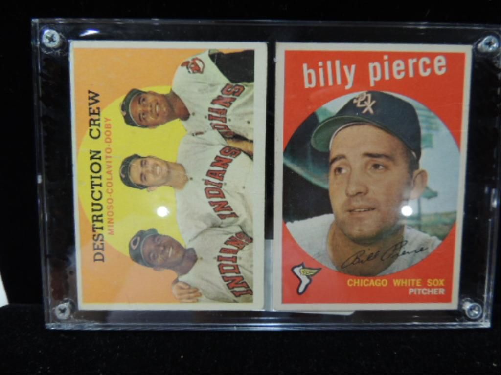 DESTRUCTION CREW: MINOSO, COLAVITO, DOBY #166 AND BILLY PIERCE #410 BASEBALL PLAYER CARDS. BASEBALL TRADING CARDS. VINTAGE CARDS. AS SHOWN. SEE PHOTO FOR MORE DETAILS.