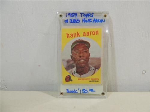 1959 TOPPS #380 BASEBALL PLAYER CARD HANK AARON. AS SHOWN. VIEW PICTURE FOR DETAIL.