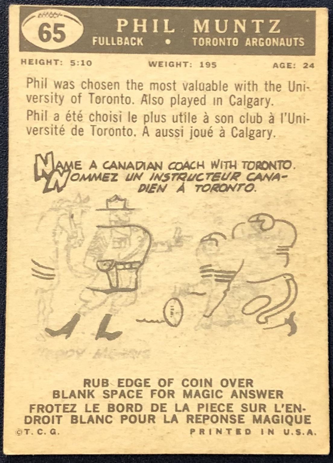 Card #65 CFL, football, vintage, OPC, hall of fame