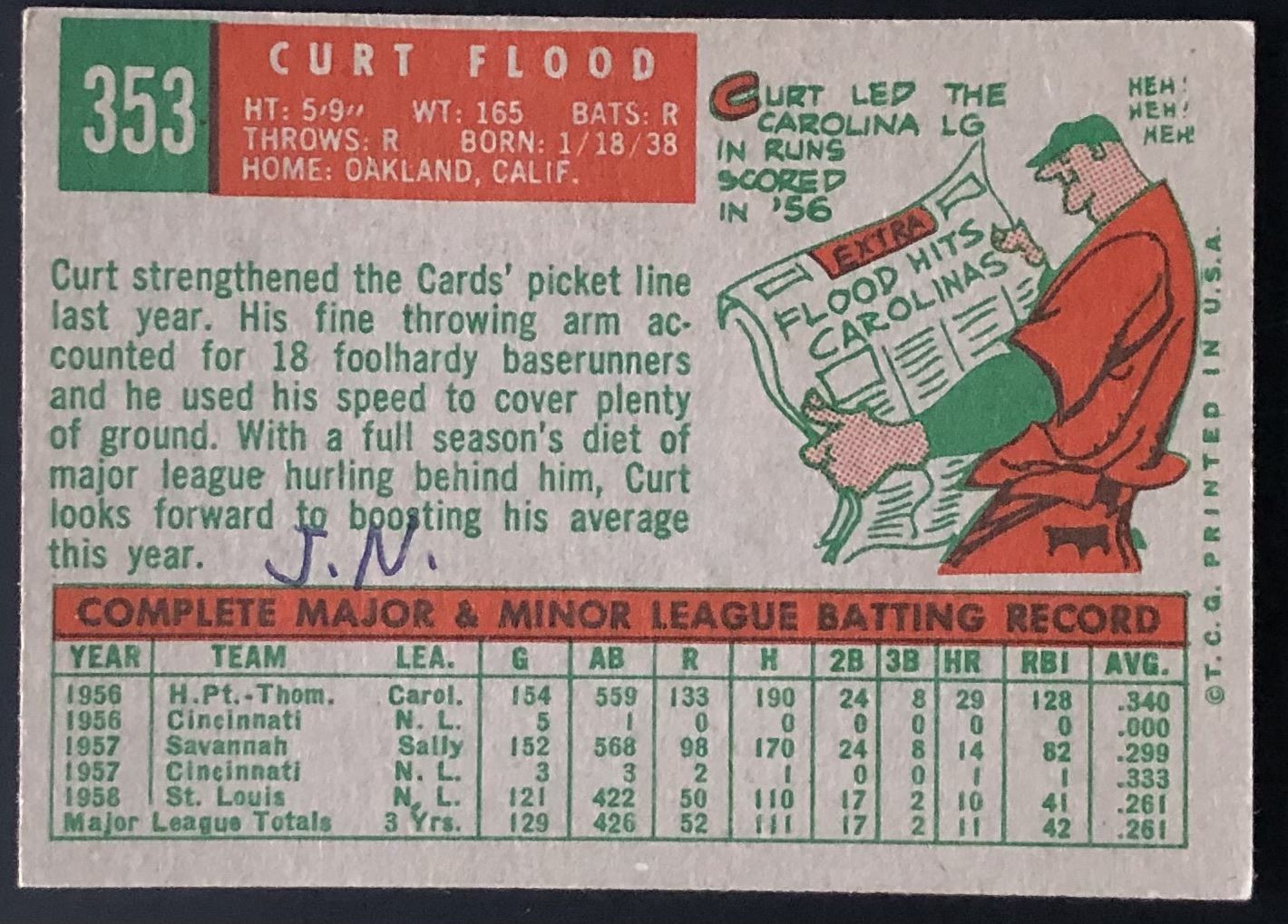 Card #353 ink marking on back MLB, baseball, vintage, rookie
