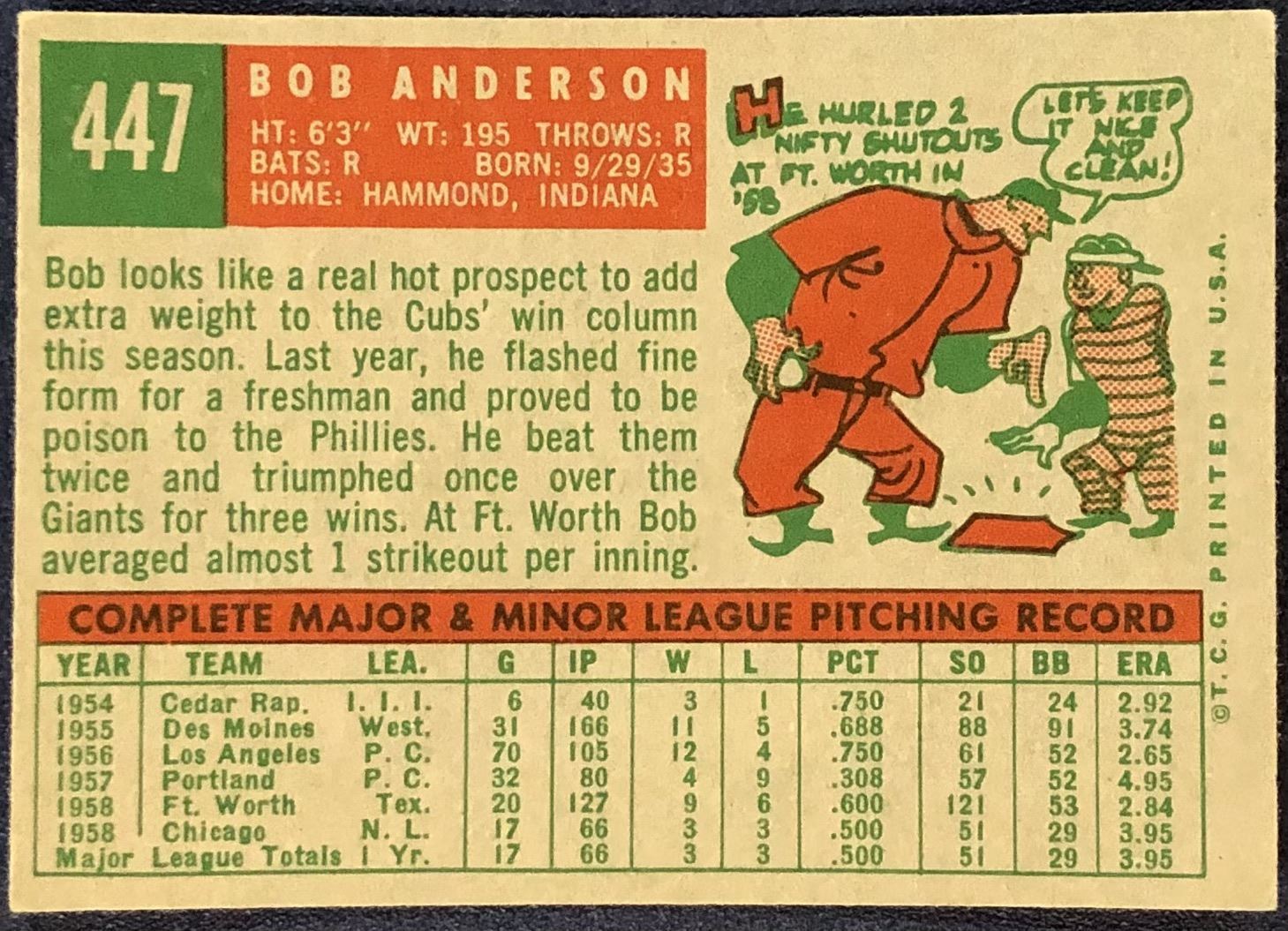 Card #447 MLB, baseball, vintage, rookie