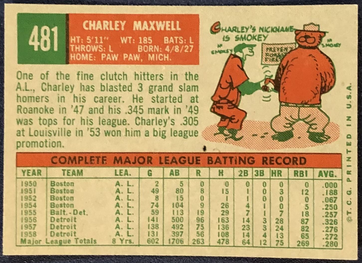 Card #481 MLB, baseball, vintage