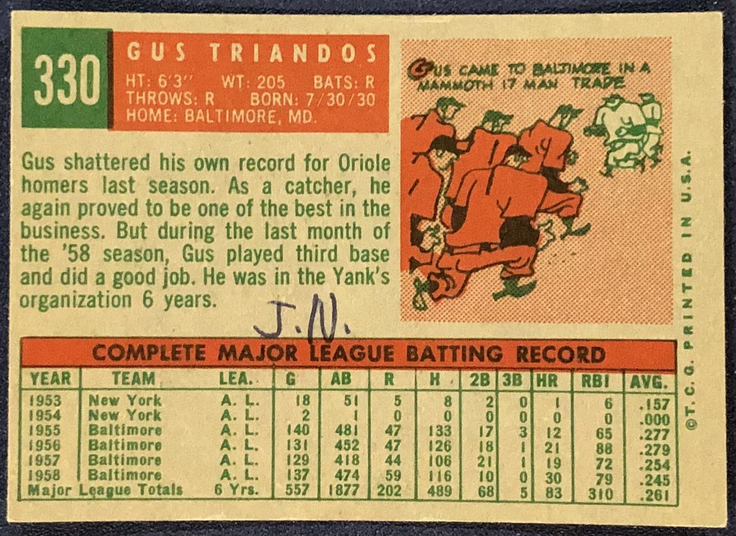 Card #330 (some ink on back) MLB, baseball, vintage