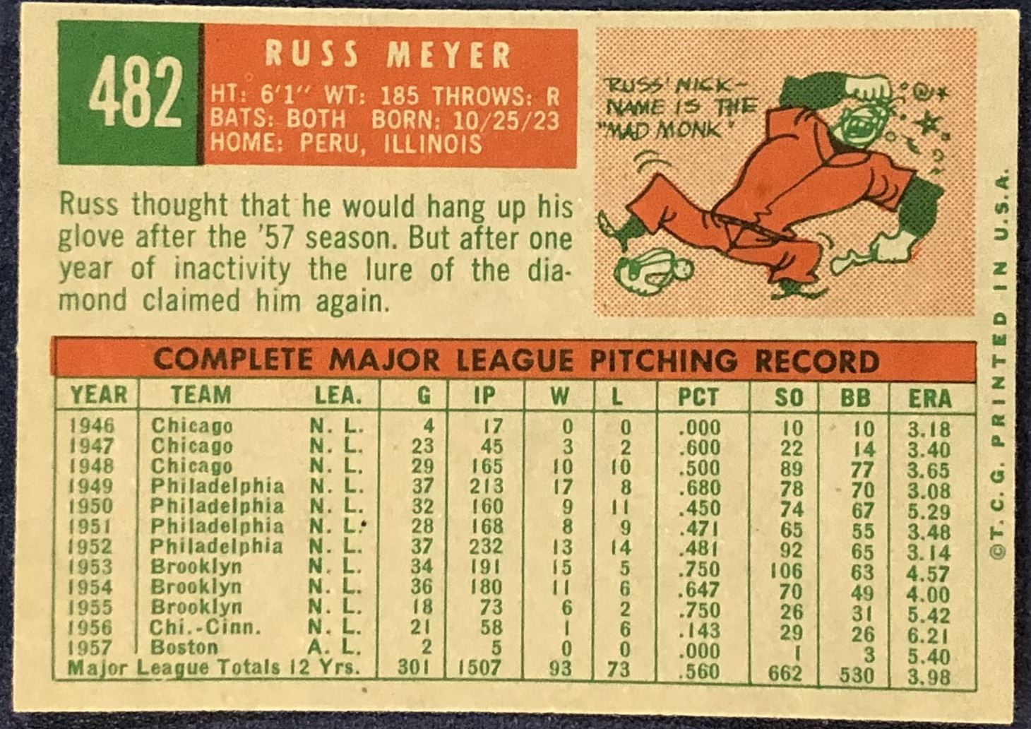 Card #482 MLB, baseball, vintage