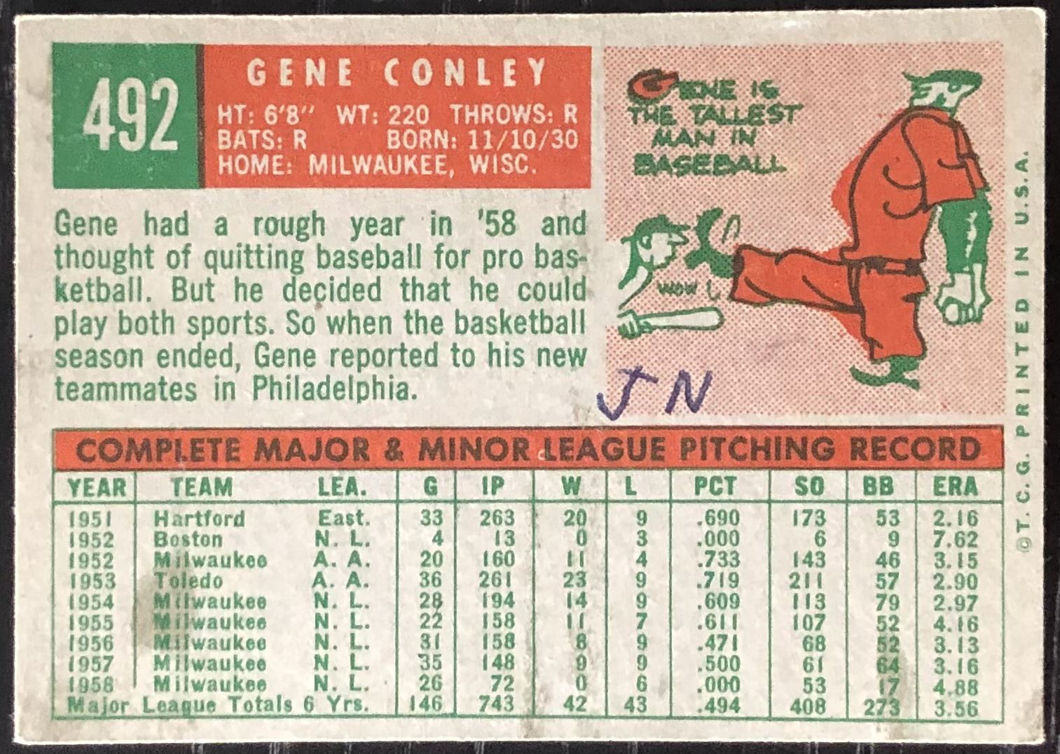 Card #492 (ink on back) MLB, baseball, vintage