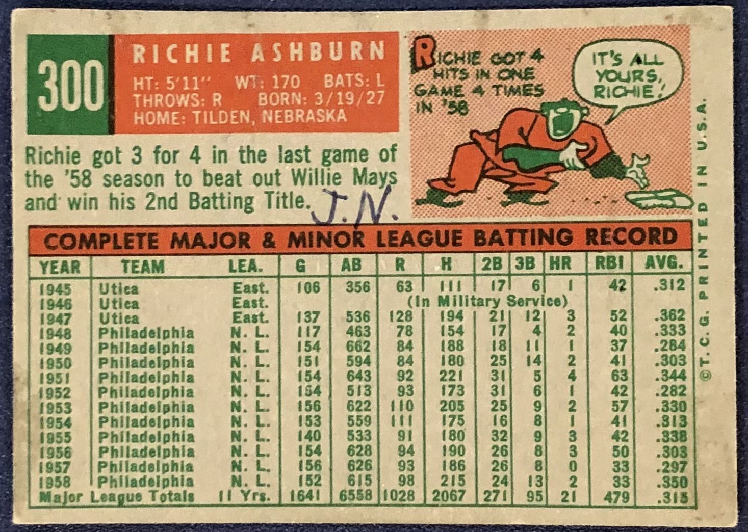 Card #300 (ink on back) MLB, baseball, vintage, hall of fame