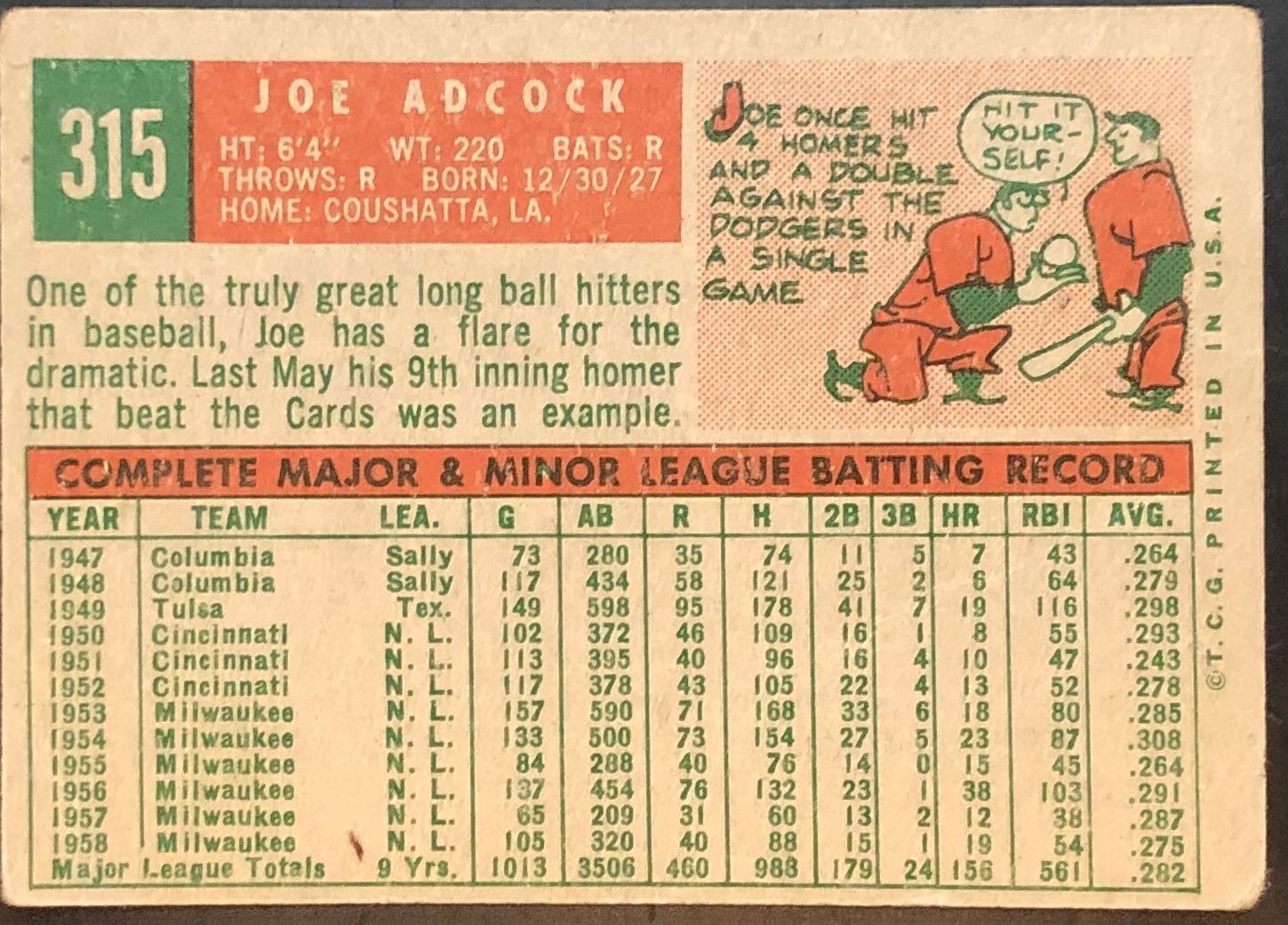 Card #315 vintage, MLB, baseball