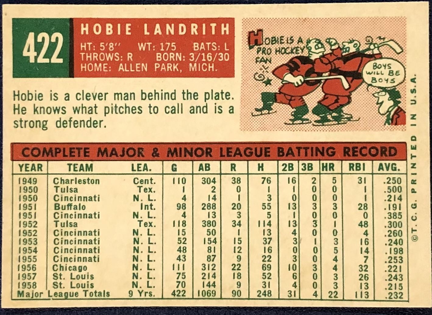 Card #422 MLB, baseball, vintage