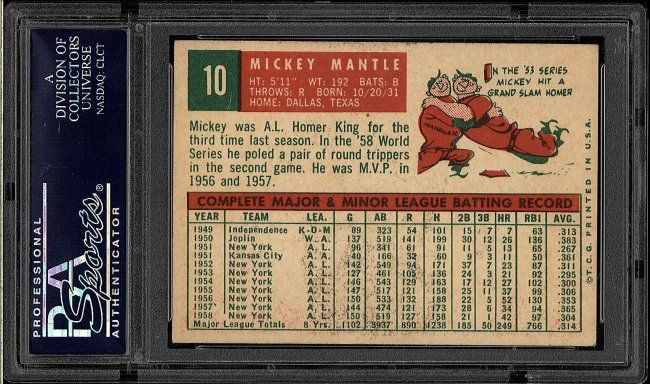 1959 Topps Mickey Mantle Card #10 Very Good/Excellent