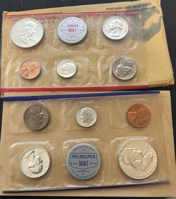 1959 U.S. Mint Uncirculated Set 10 Coins, D&P Mints. This 1959 Mint Set includes 10 coins with the cent through half dollar from both the Philadelphia and Denver Mints in 1959.