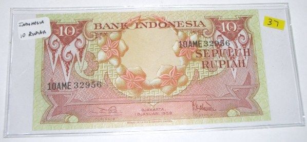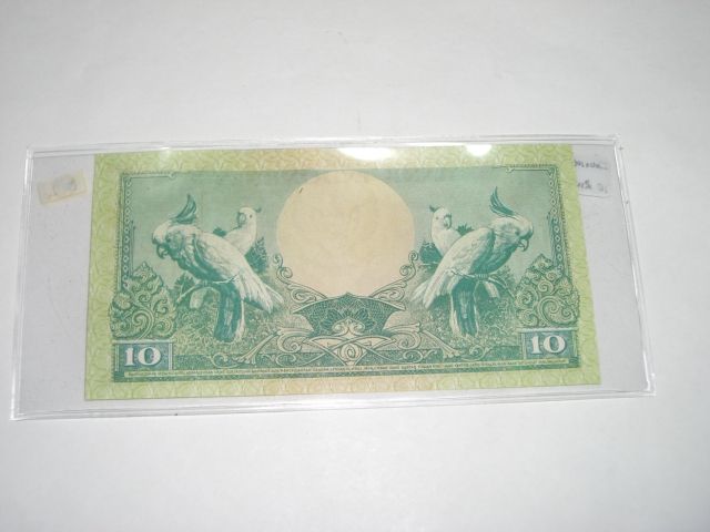 1959 VERY RARE INDONESIA 10 TEN RUPIAH BILL SERIAL # 10AME32956 *RARE UNC HIGH GRADE NOTE*!! ***Coin, Currency & All Items Listed in this auction - Grades, Conditions and Values are not Safe Deposit Coins LLC Responsibilty. Grades, Condition and Values are determined by Consigner(s) & Buyers ONLY***
