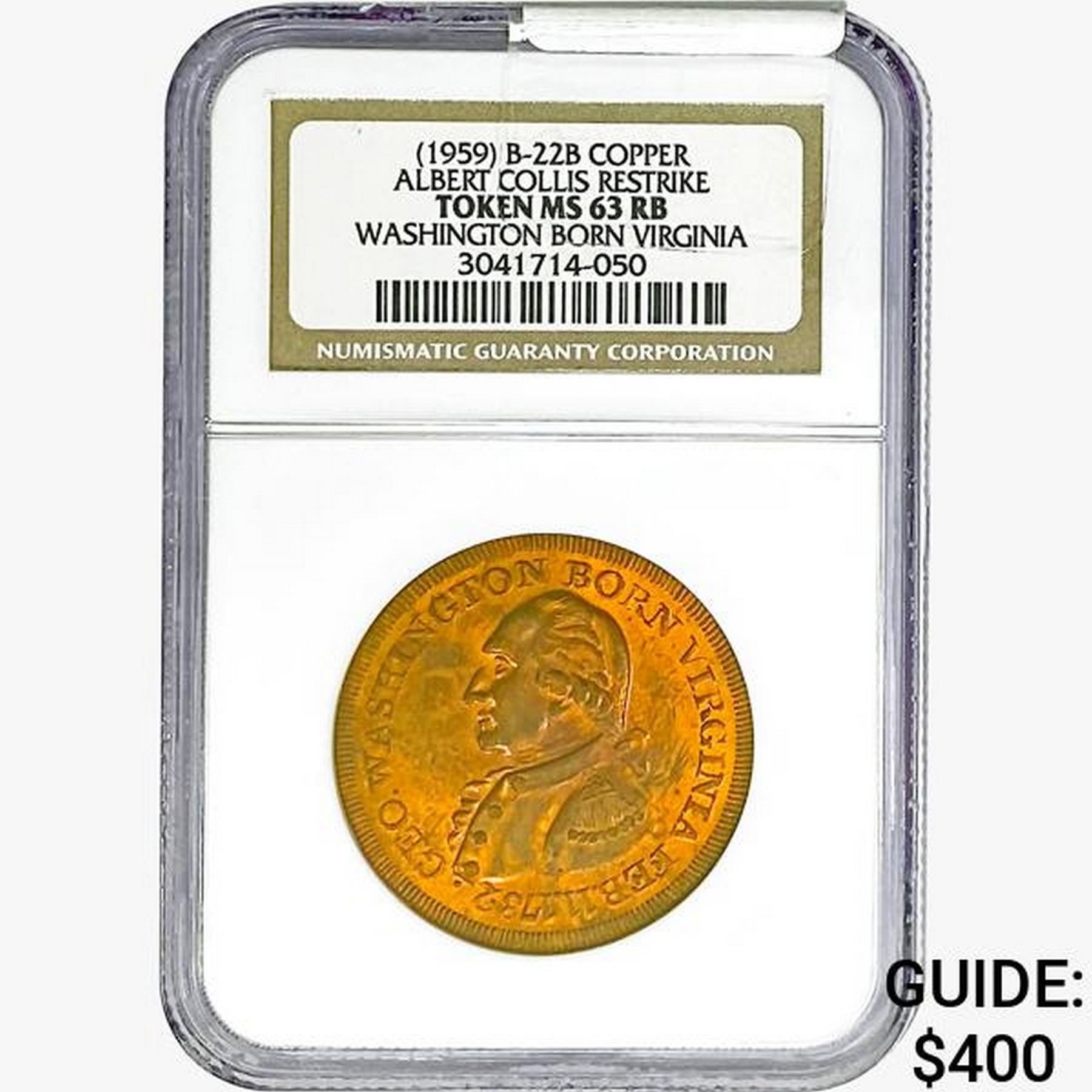 1959 WA Token Albert Collis B-22B NGC MS63 RB