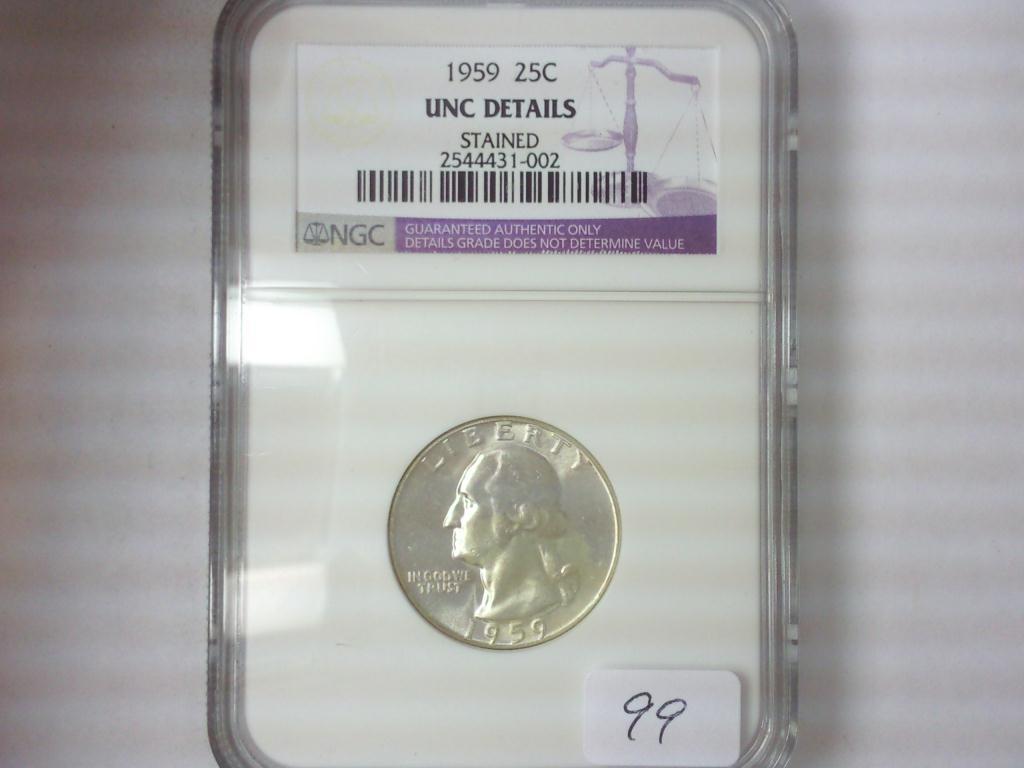 1959 WASHINGTON QUARTER NGC UNC DETAILS STAINED