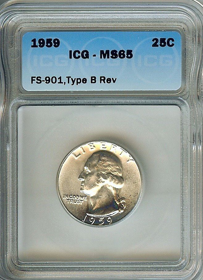 1959 WASHINGTON SILVER 25 CENTS TYPE B REV FS#901 ICG MS-65