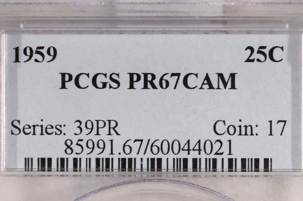 1959 WASHINGTON SILVER QUARTER PCGS PR67 CAM