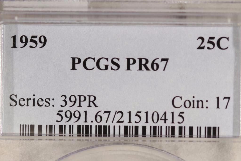 1959 WASHINGTON SILVER QUARTER PCGS PR67