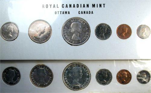 Canada 1959 and 1960 Proof-Like Sets in white cards. The silver is lightly toned and there are some cameos