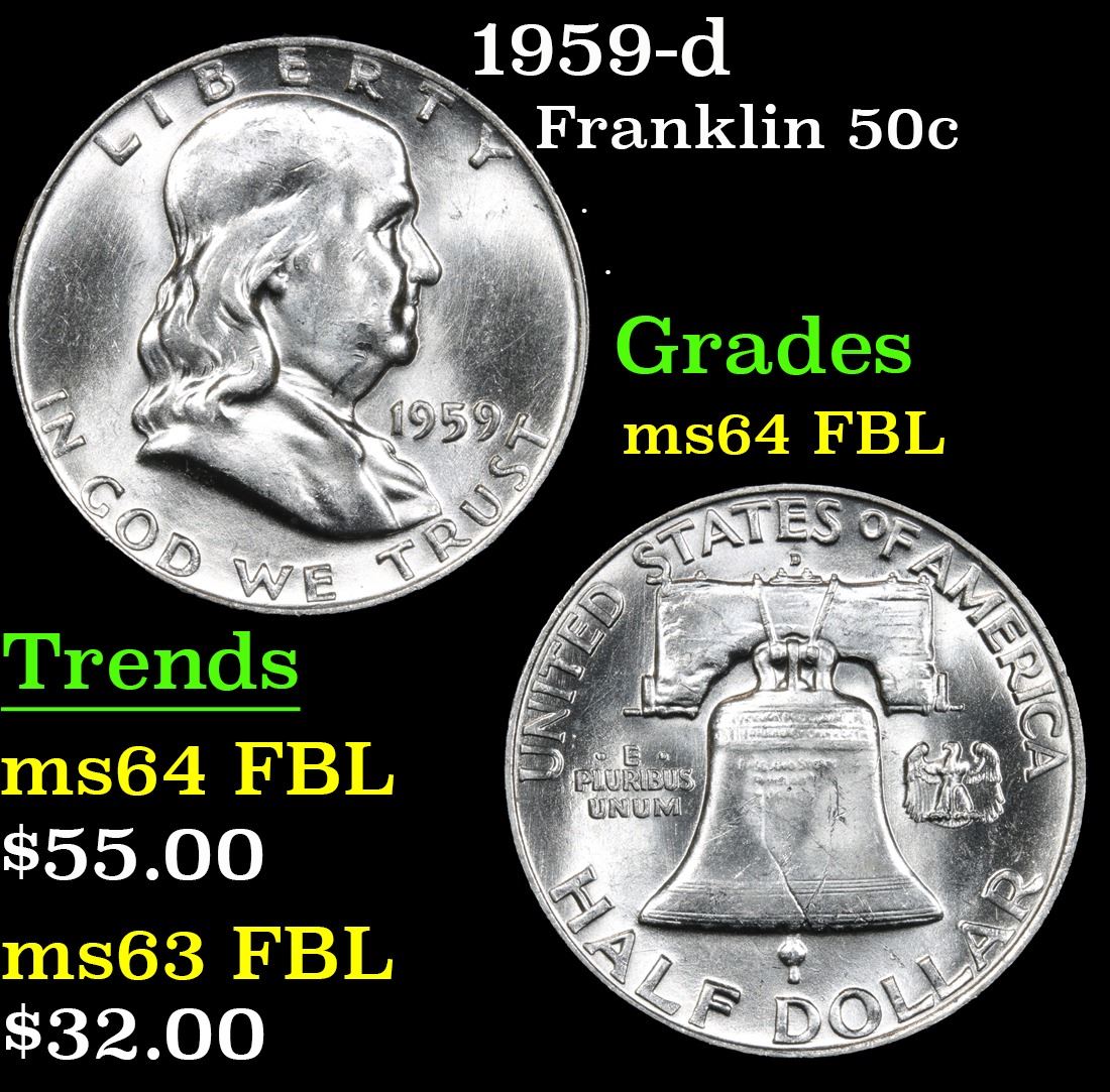 1959-d Franklin Half Dollar 50c Grades Choice Unc FBL.
