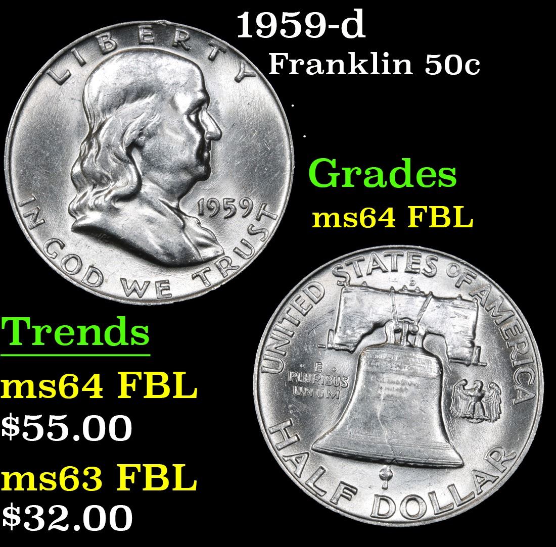 1959-d Franklin Half Dollar 50c Grades Choice Unc FBL.
