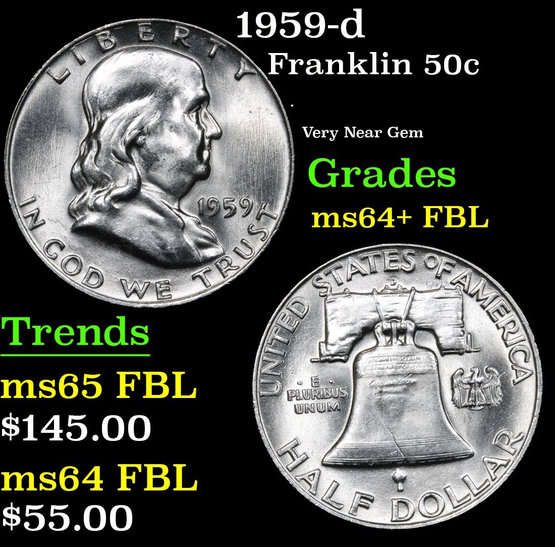1959-d . Very Near Gem Franklin Half Dollar 50c Grades Choice Unc+ FBL.