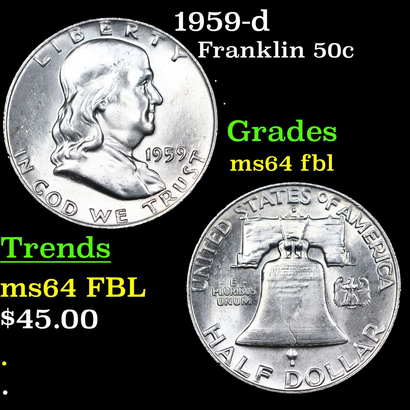 1959-d Franklin Half Dollar 50c Grades Choice Unc FBL.