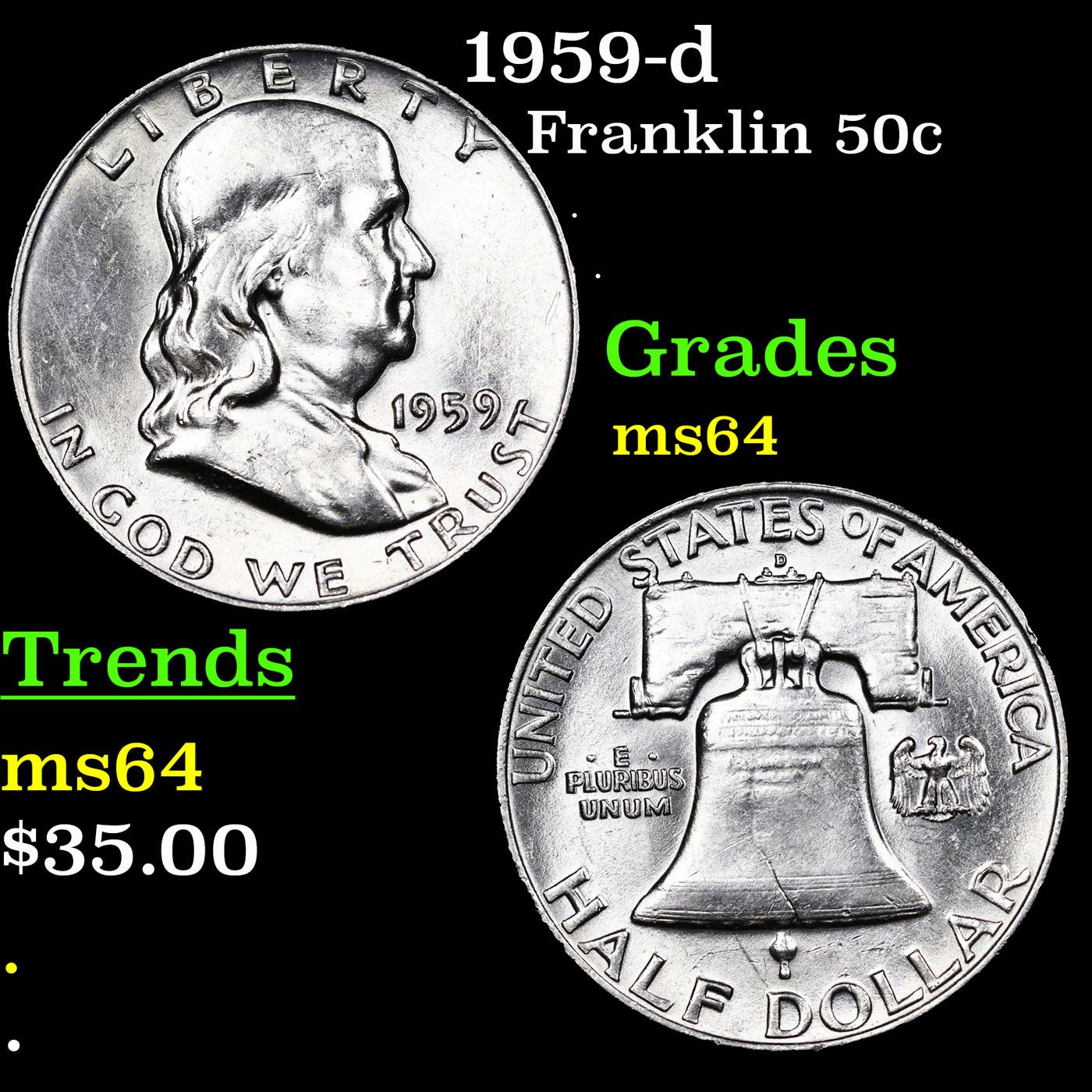 1959-d Franklin Half Dollar 50c Grades Choice Unc.