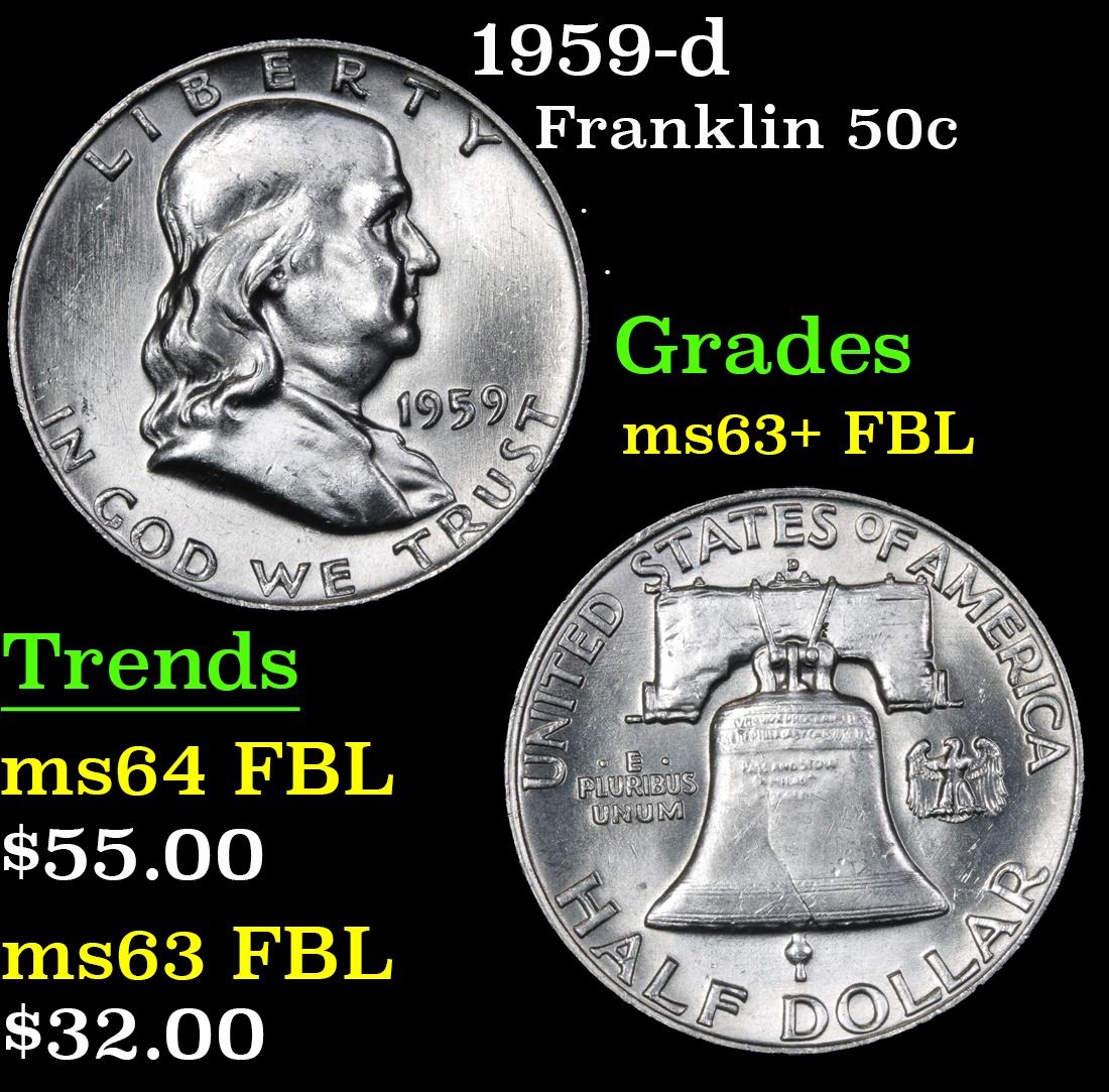 1959-d . . Franklin Half Dollar 50c Grades Select Unc+ FBL.