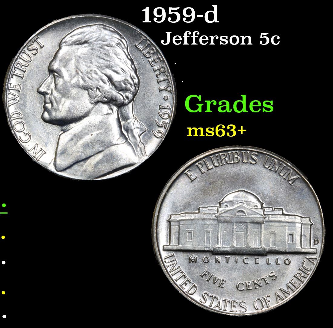 1959-d . . Jefferson Nickel 5c Grades Select+ Unc.