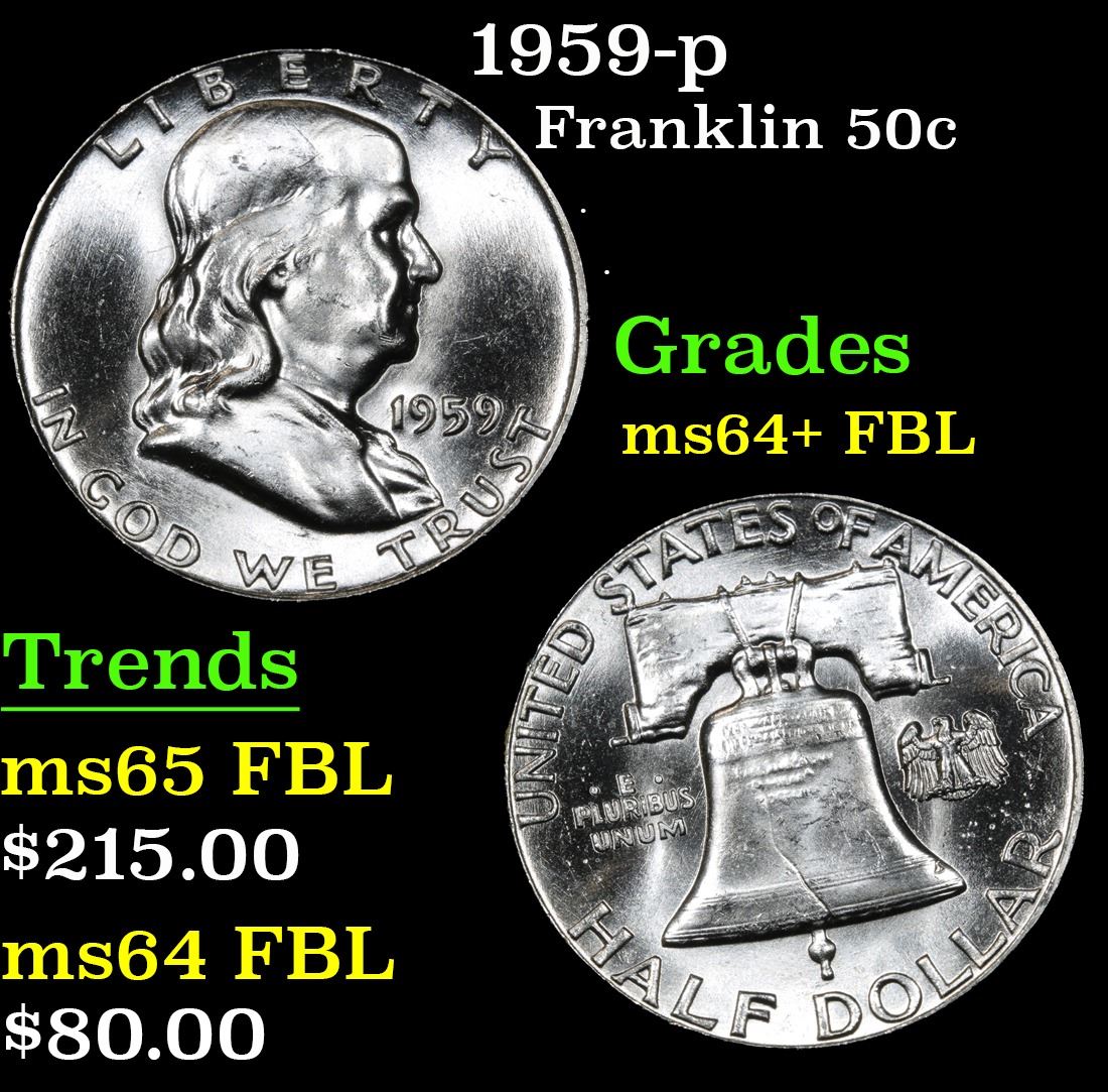 1959-p Franklin Half Dollar 50c Grades Choice Unc+ FBL.