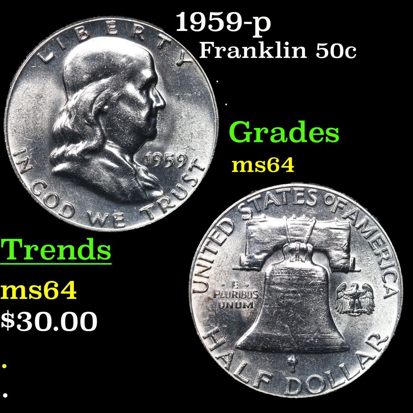 1959-p Franklin Half Dollar 50c Grades Choice Unc.