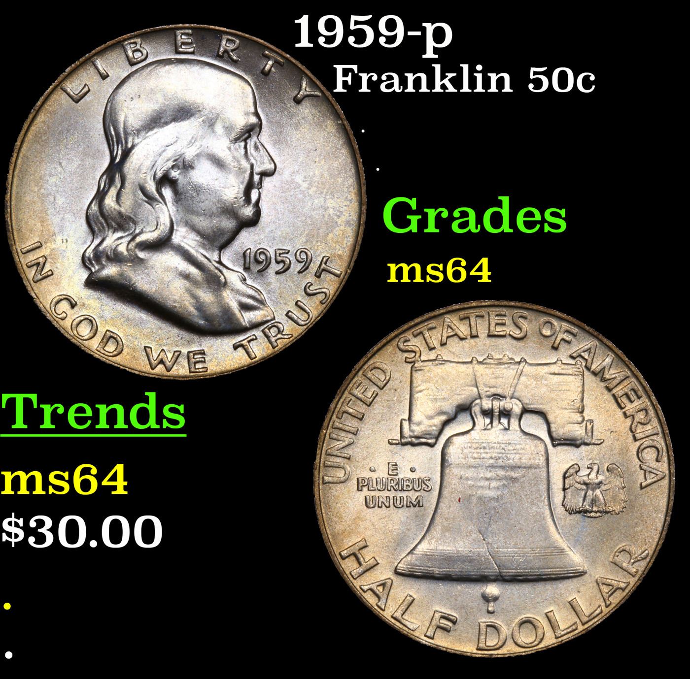 1959-p Franklin Half Dollar 50c Grades Choice Unc.