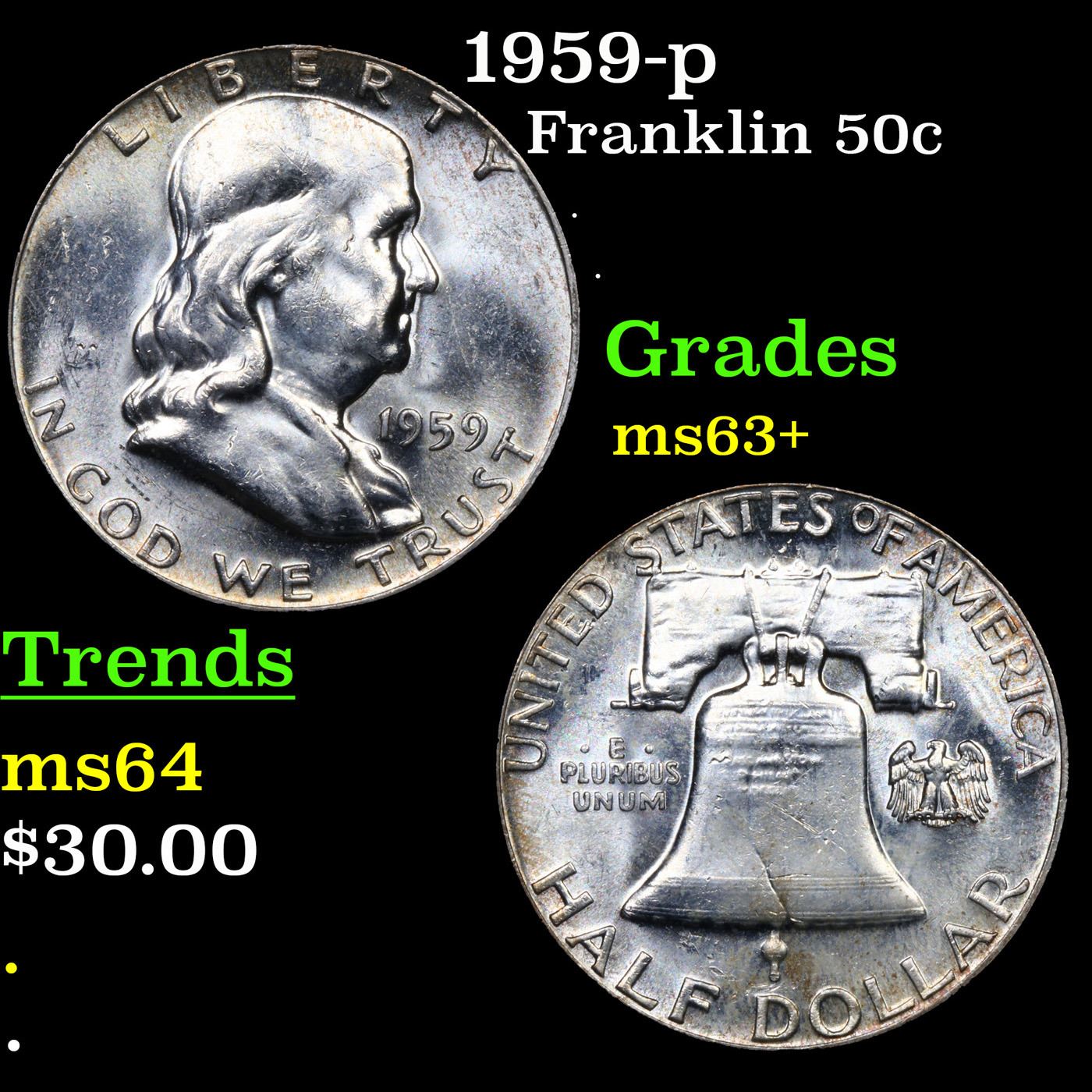 1959-p Franklin Half Dollar 50c Grades Select+ Unc.