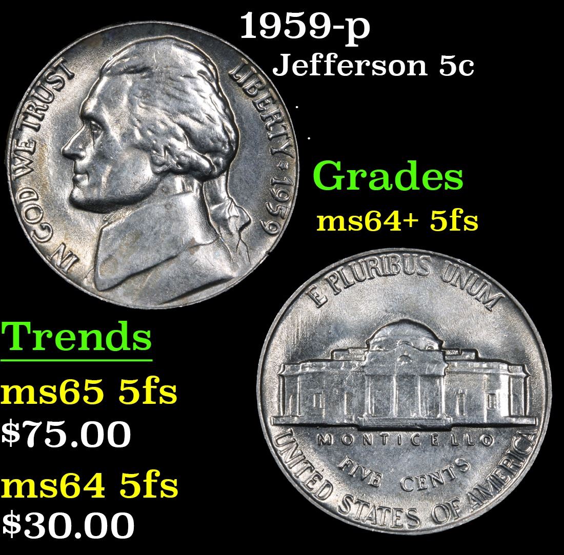 1959-p . . Jefferson Nickel 5c Grades Choice Unc+ 5fs.