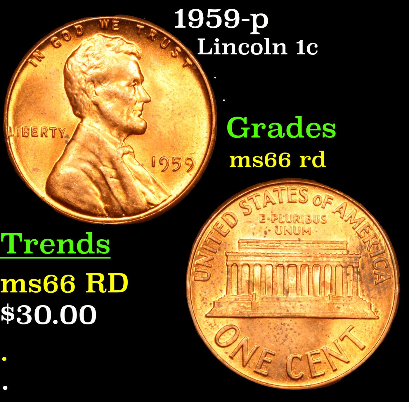 1959-p Lincoln Cent 1c Grades GEM+ Unc RD.