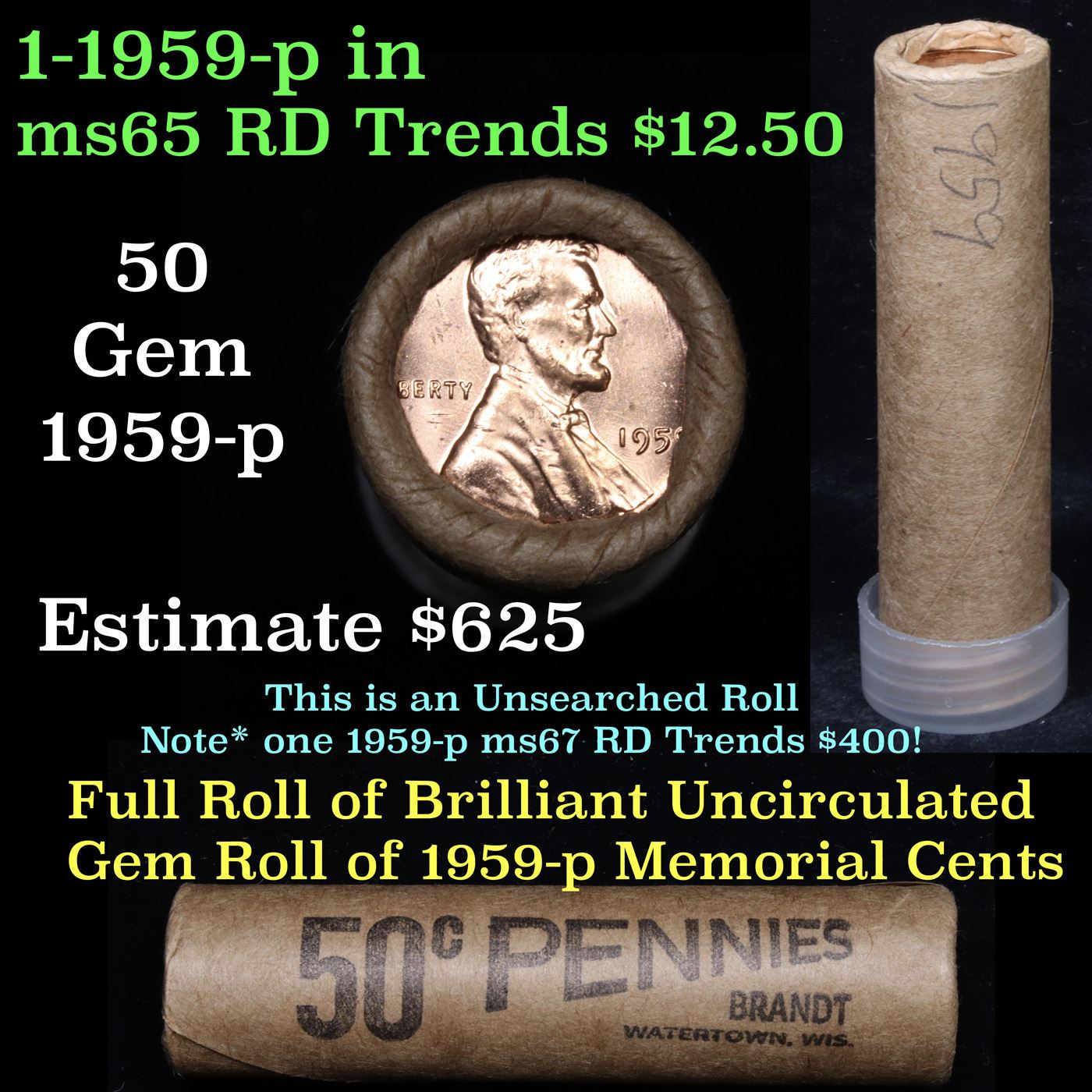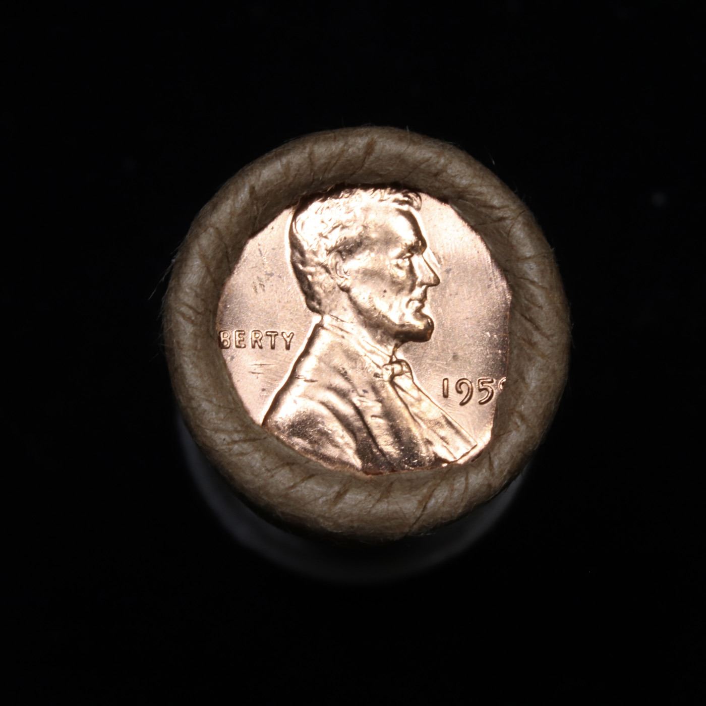 1959-p Uncirculated Shotgun Mixed date Lincoln 1c roll, 50 pcs Brinks Wrapper Grades