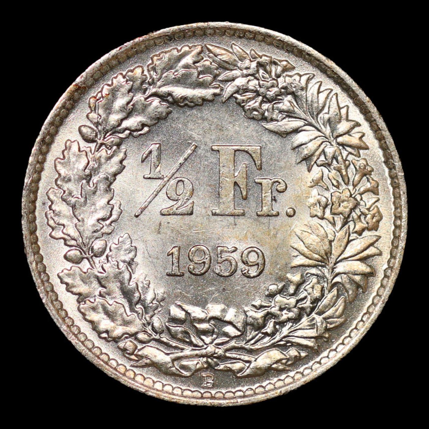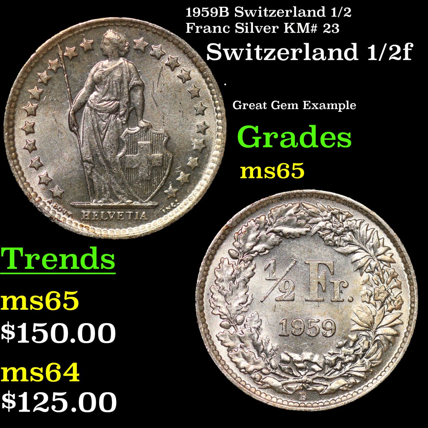 1959B Switzerland 1/2 Franc Silver KM# 23 Grades GEM Unc.