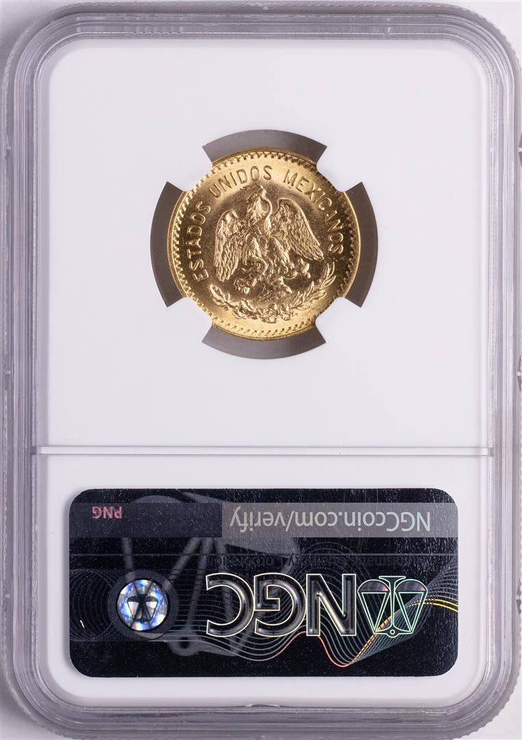 One 1959M Mexico 10 Pesos Restrike Gold Coin NGC MS65. NGC Certified.
