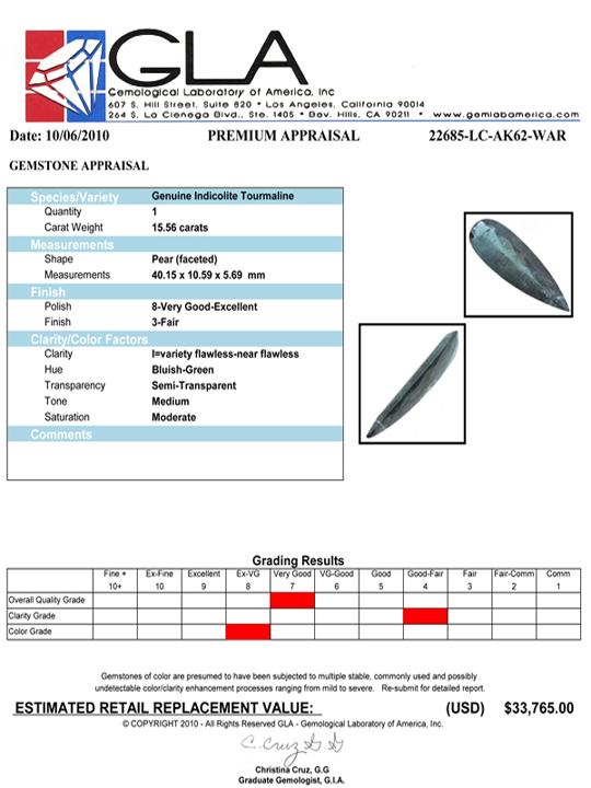 In the event that an item is listed as having an "Appraisal Estimate", this represents WAR's in-house estimate of what the item would appraise for at Gem Labs of America (GLA), Beverly Hills, CA. Actual appraisal of the item at GLA is the responsibility of the Bidder, however WAR may assist, at its discretion, in related logistics. WAR does provide the following guaranty (the "WAR 5% Loose Gem Guaranty") relative to Appraisal Estimate values of LOOSE GEMS: In the event that the GLA appraised value is not such an amount that the Bidder's winning bid is five percent (5%) or less of the GLA appraised value, then WAR, in it's discretion, will either refund such amount of the Bidder's winning bid and related charges so that the winning bid equals five percent (5%) of the GLA appraised value, or, instead issue a full refund on the item and reimburse the Bidder for the GLA appraisal fees. The Bidder may also opt to retain the item, in which case the WAR 5% Gem Guaranty shall not apply relative to the particular item.