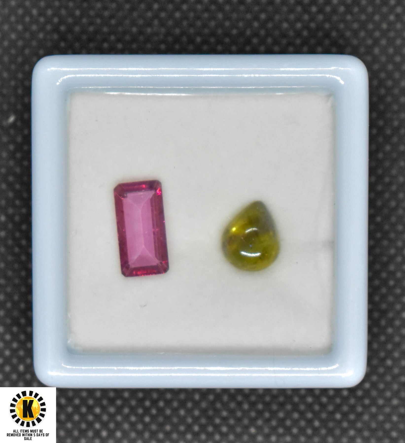 SURFACE COATING PINK TOPAZ 6.2 X 12 MM /HEATED GREEN SAPPHIRE 7.8 X 9.2MM