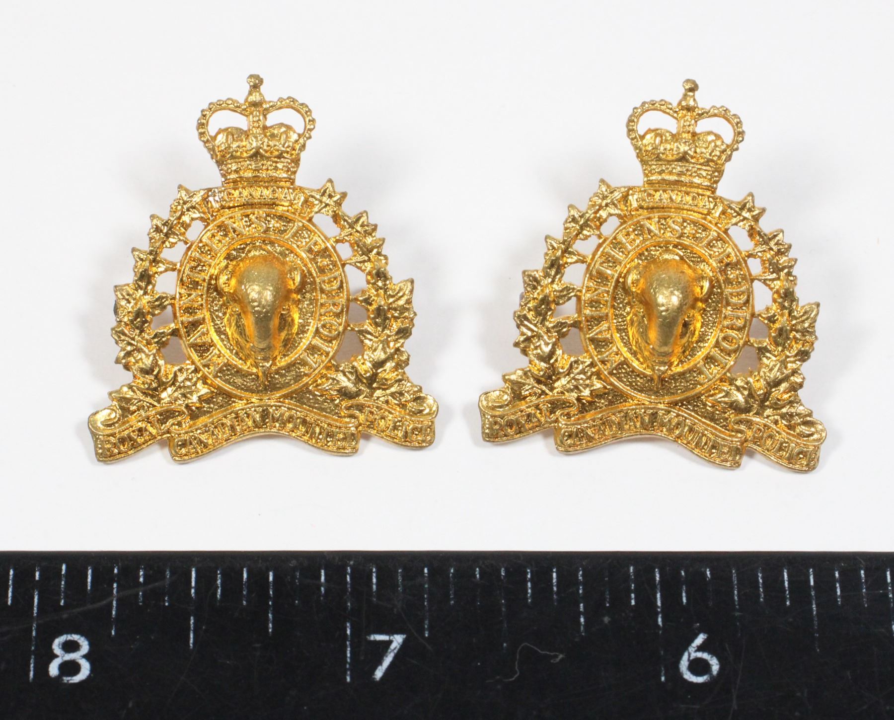 ROYAL CANADIAN MOUNTED POLICE COLLAR BADGE PAIR WITH LUGS VARIATION QUEEN ELIZABETH II RCMP - CANADIAN LAW ENFORCEMENT INSIGNIA